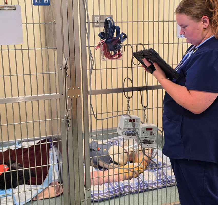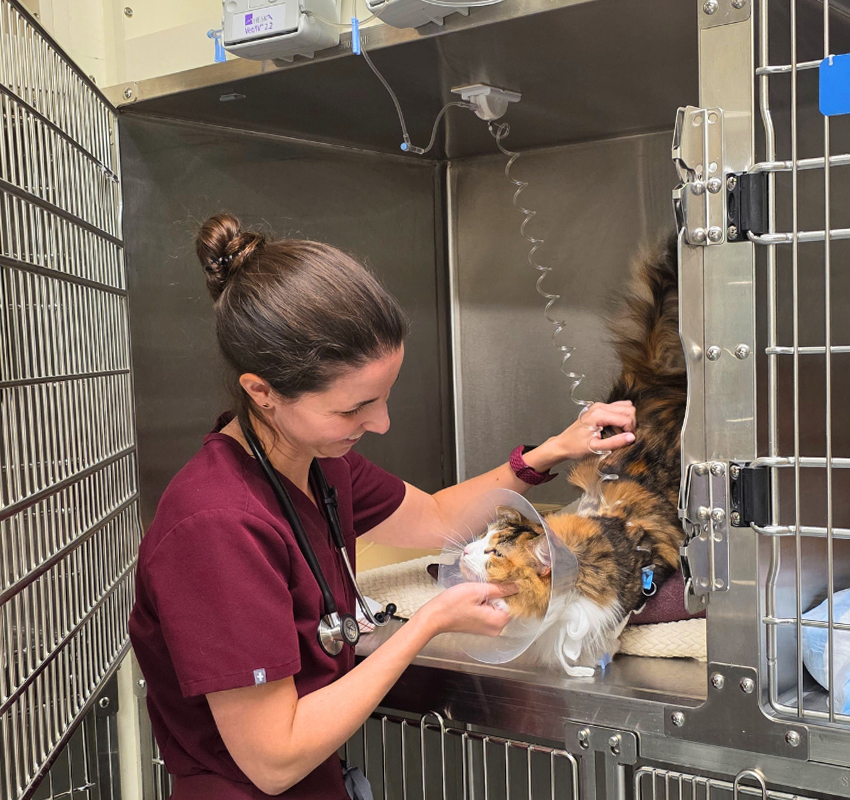 Our veterinary technicians alert the doctors of any problems that may develop and monitor for signs of discomfort that would warrant an adjustment to the patient’s pain management protocol. They remain with the patients 24 hours a day and provide support to families worried about their ailing pets through phone updates and during patient visits.